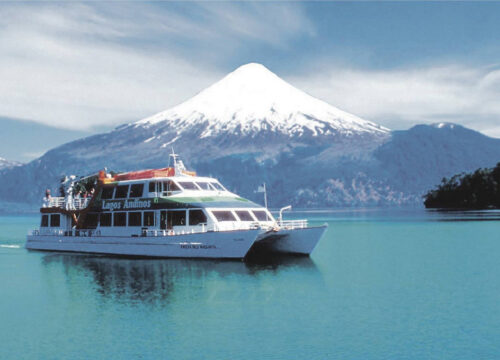 La navegación en catamarán sobre el Lago Todos los Santos es una experiencia única que permite disfrutar de las impresionantes vistas y la serenidad de este hermoso lago. A bordo de un catamarán, los visitantes pueden deslizarse suavemente sobre las aguas esmeralda del lago, rodeado de majestuosos volcanes como el Osorno y el Puntiagudo, y una vegetación exuberante.