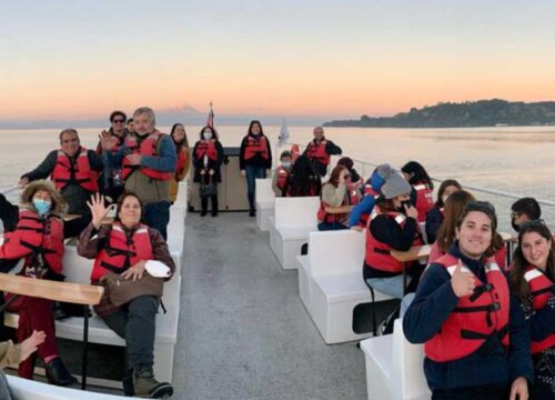 Navega el Lago Llanquihue en un paseo de 45 minutos con audio guiado, que te contará acerca de la historia y geografía de la zona. Disfruta de un rico café de grano o chocolate abordo acompañado de algún snack para compartir. En esta navegación podrás admirar Frutillar desde el Lago Llanquihue, admirar los 6 volcanes que se pueden apreciar en la Cordillera de los Andes